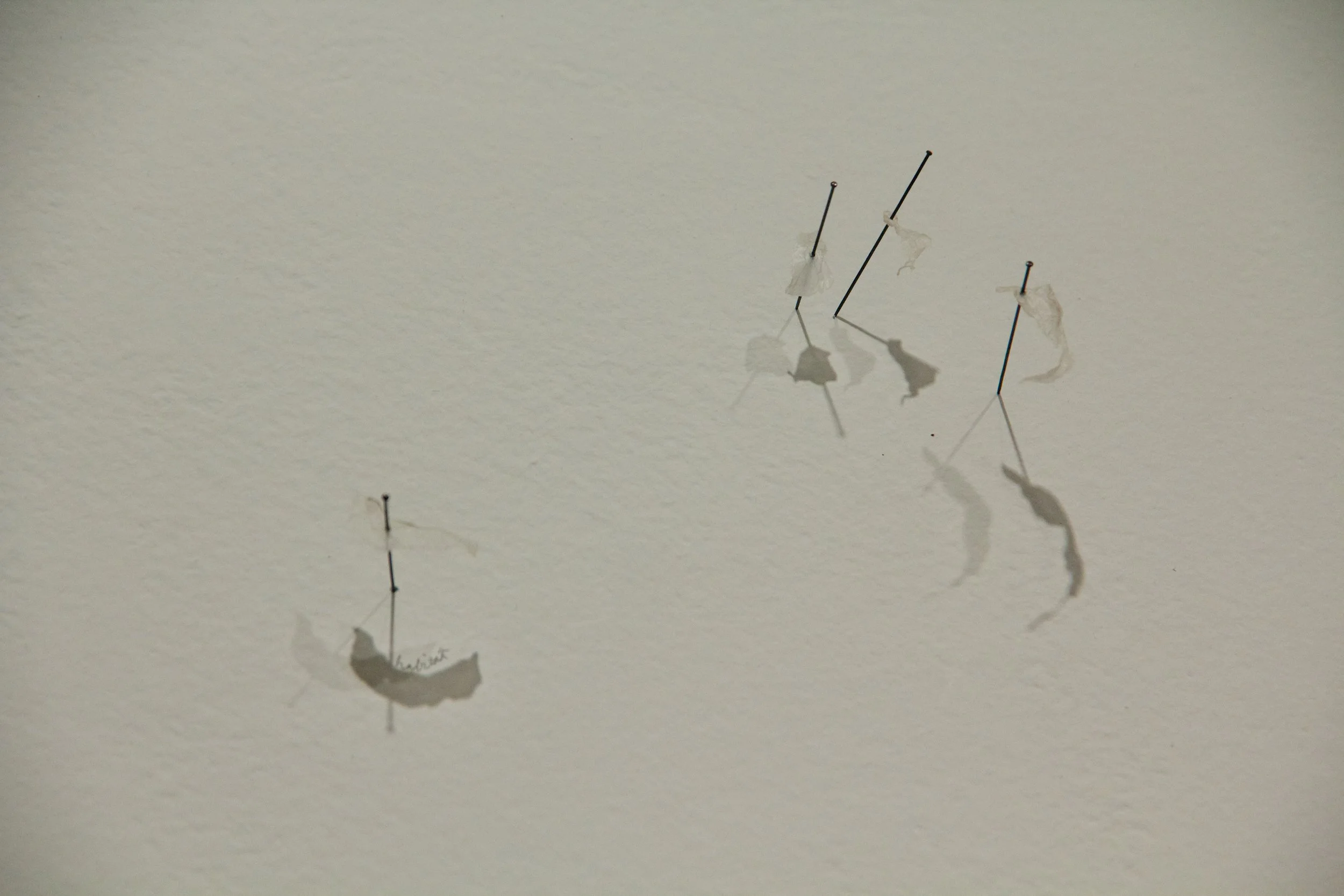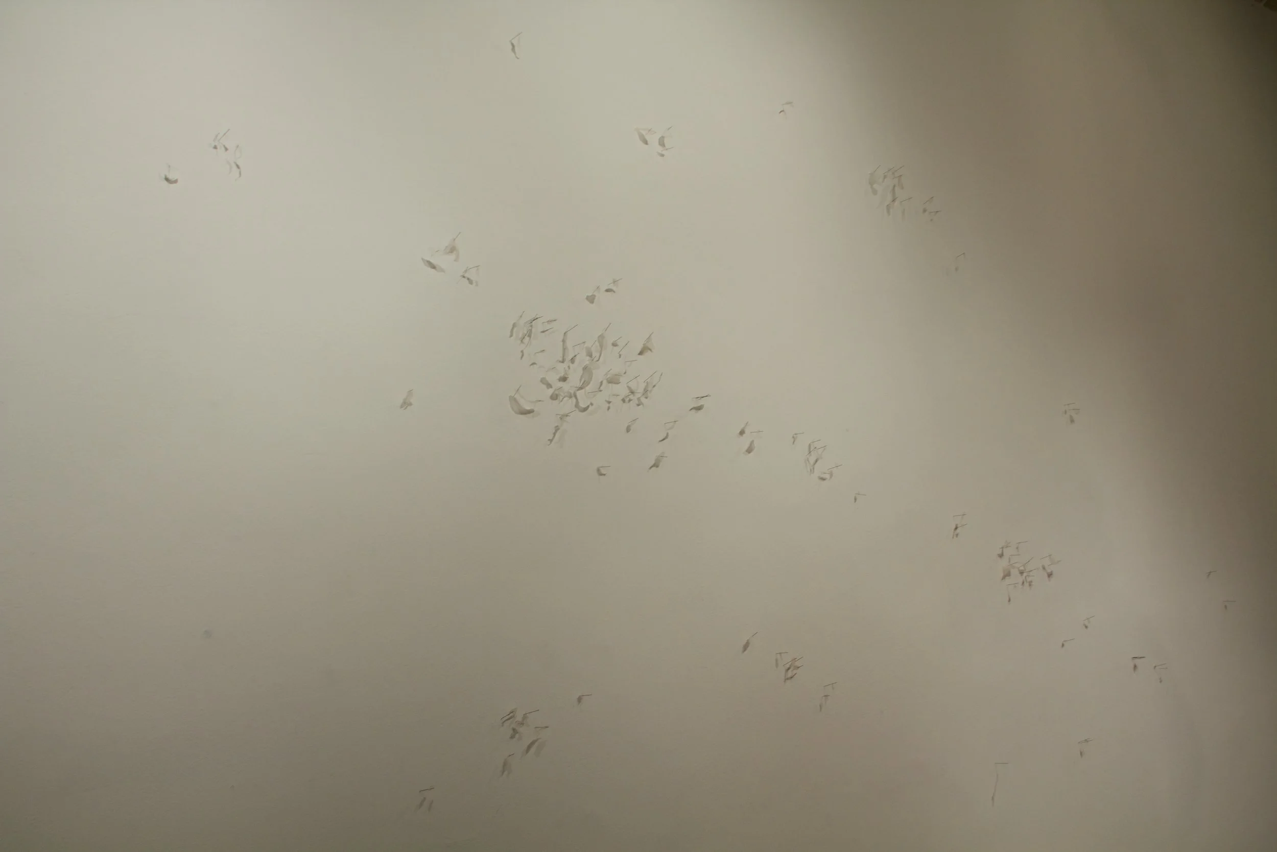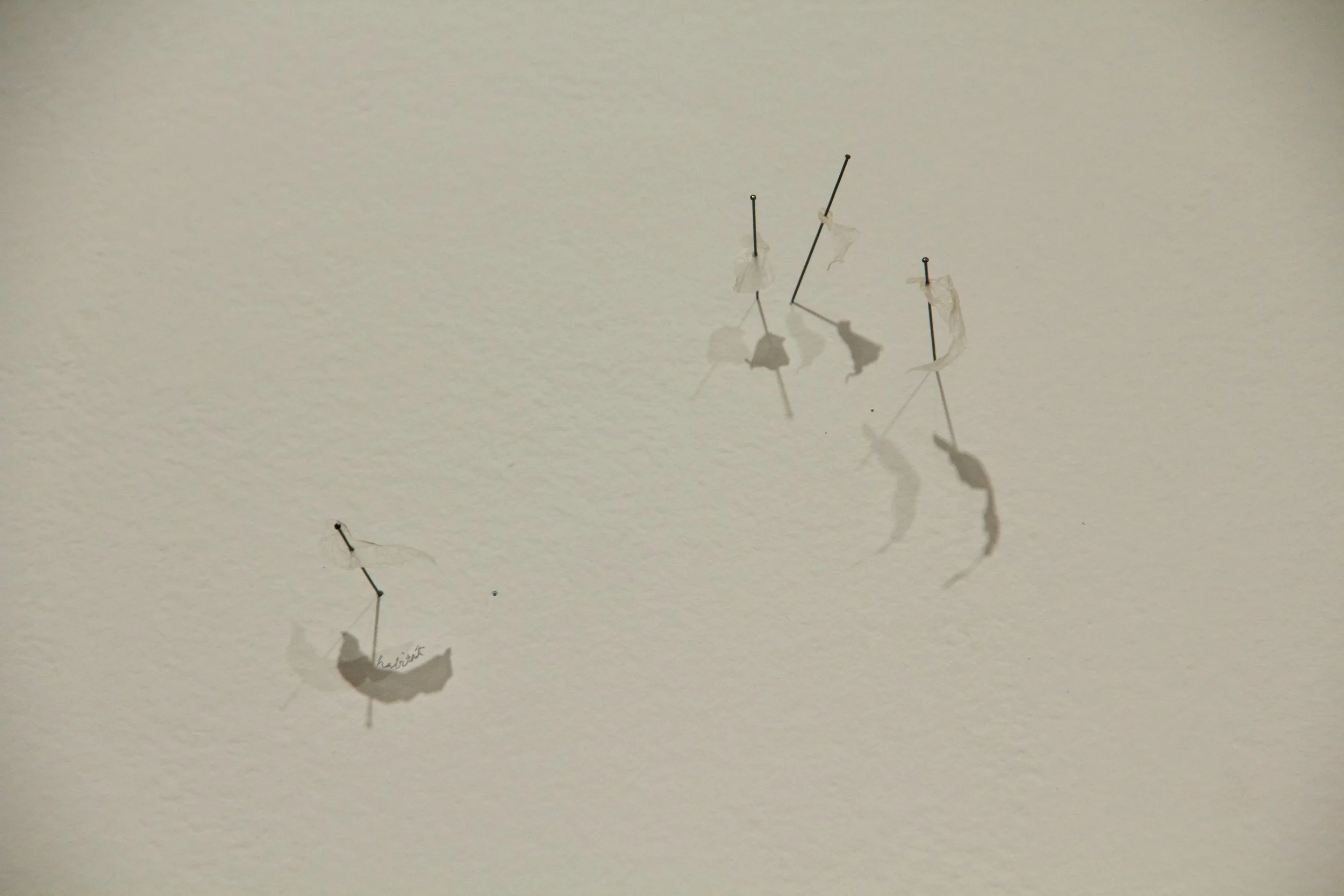 Cells burn. I peel and map the paper thin geography of 2,169 days on a wall. Shadows flap in the wake of passing bodies. Binoculars hang on an opposite wall. Skin fragmented and separated from body becomes its own body.